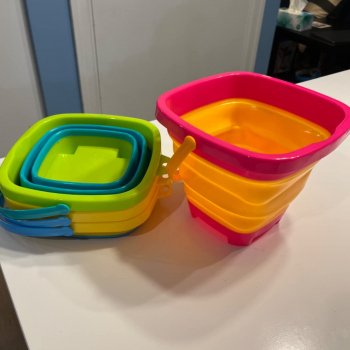Absolutely love that these buckets fold flat. So convenient when packing up after a day at the beach or park.