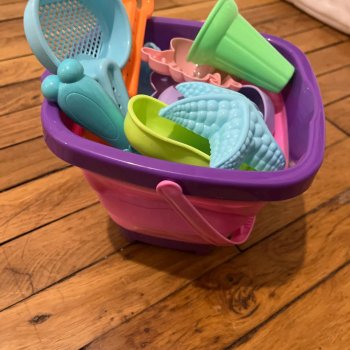 Great beach toy set! The collapsible bucket is a genius idea and the quality of all the toys is excellent. It's perfect for our summer outings.