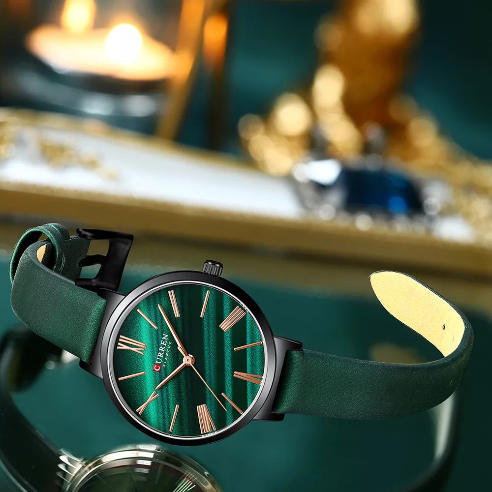 Ready to add a dash of elegance to your daily look? This green leather wristwatch is the perfect blend of sophistication and practicality. Don’t wait to upgrade your accessory collection—make a bold yet subtle statement today. It’s time to shine with this beautiful, versatile watch.