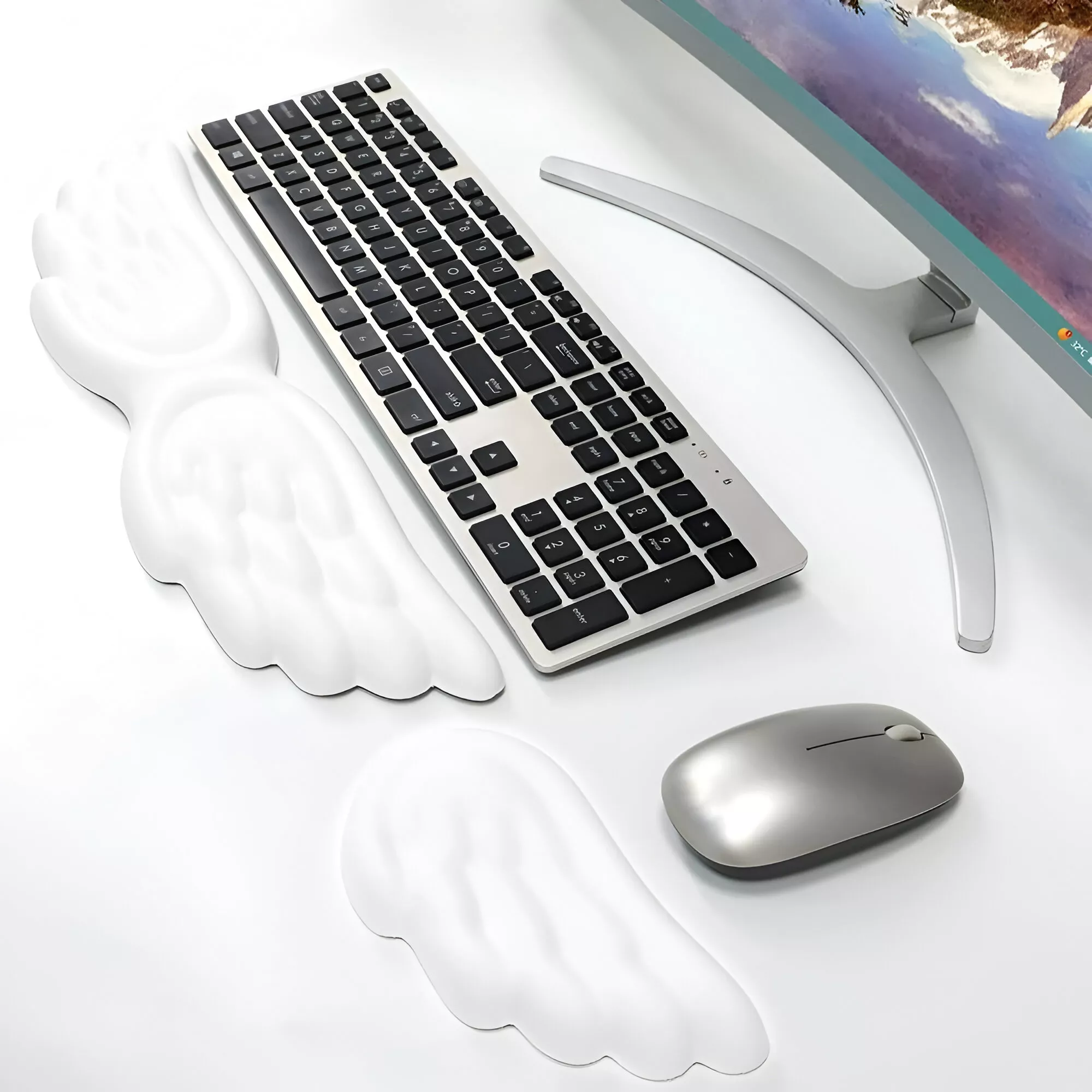 Upgrade your workspace with this beautifully designed mechanical keyboard and mouse combo that’s paired with angel wing-inspired memory foam wrist rests. Created with a smooth leather finish and cushioned support, this set doesn’t just elevate your desk aesthetics—it transforms how you work or game. With a focus on both comfort and performance, this all-in-one set makes long hours at your computer feel effortless.