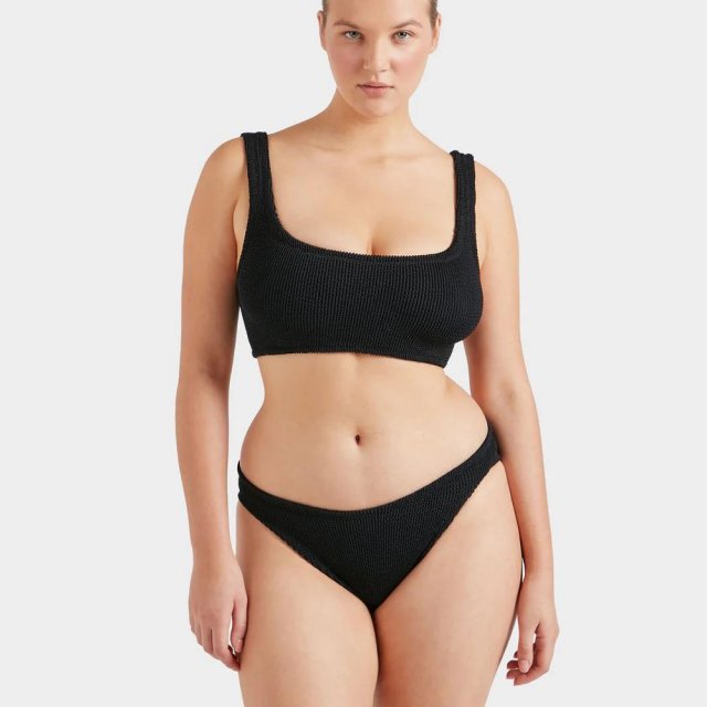 The bikini includes a halter-style top with adjustable rope straps, a cheeky low-rise bottom, and an additional accent piece for that fierce three-point effect. It’s available in plus sizes and features adjustable straps and removable padding for a custom fit. With a flattering pleated design, the underbust and hips are elegantly contoured to boost your silhouette while offering comfort during wear. Made from durable, stretchy polyester, this piece is built to move with you, making it perfect for both relaxing and active beach days.