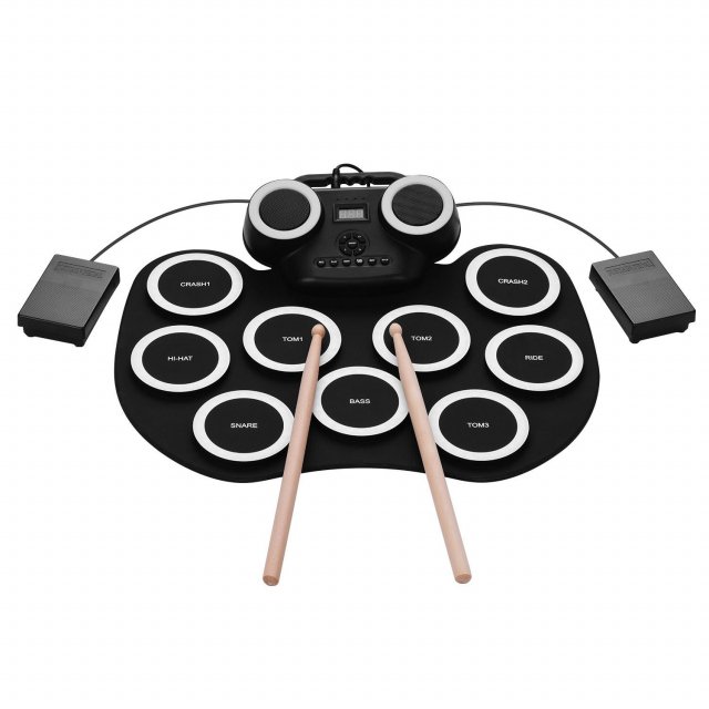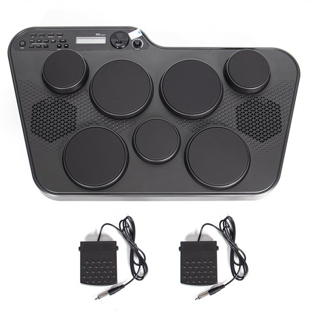 • Portable and Convenient: Compact and lightweight design, perfect for musicians on the go. Includes a desktop stand, drumsticks, and a foot pedal.
