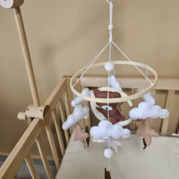 This wooden crib mobile holder is ideal from the very first days at home. Use it during calming bedtime routines, for gentle play sessions, or simply to add a sweet decorative touch to the nursery. Its rotating arm and adjustable height set it apart from basic mobile holders, giving you flexible options as your baby grows and becomes more curious about the world around them. Sized at approximately 26.2 x 14.6 inches, it fits a wide range of crib styles and easily holds your favorite soft toys or rattles.